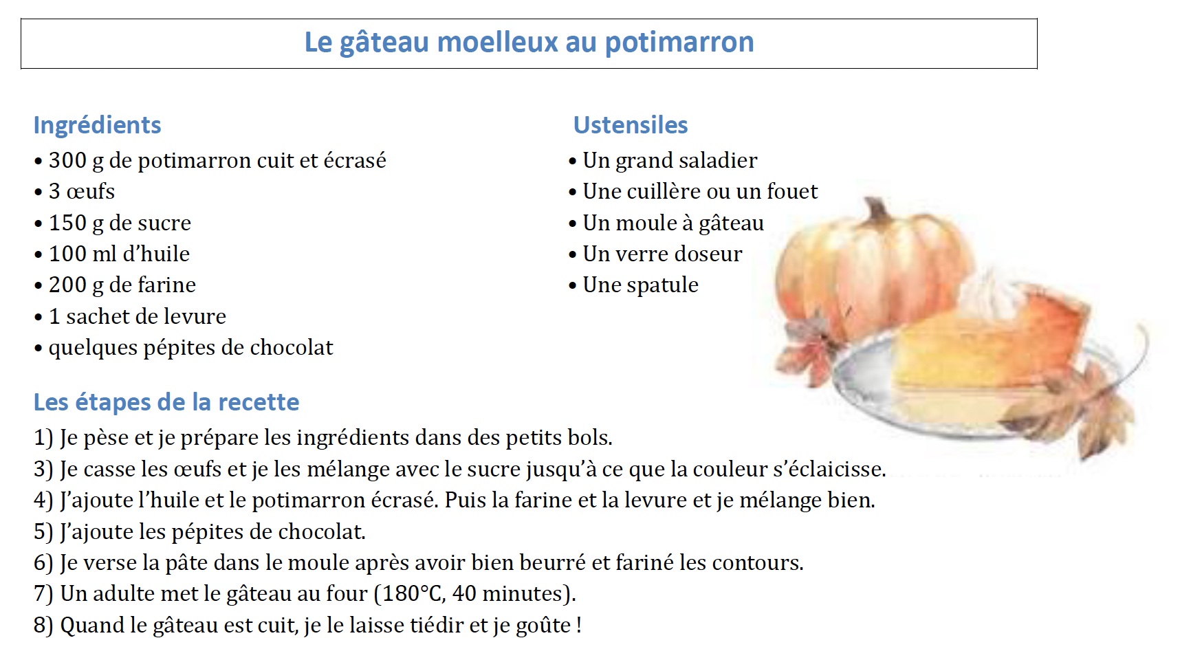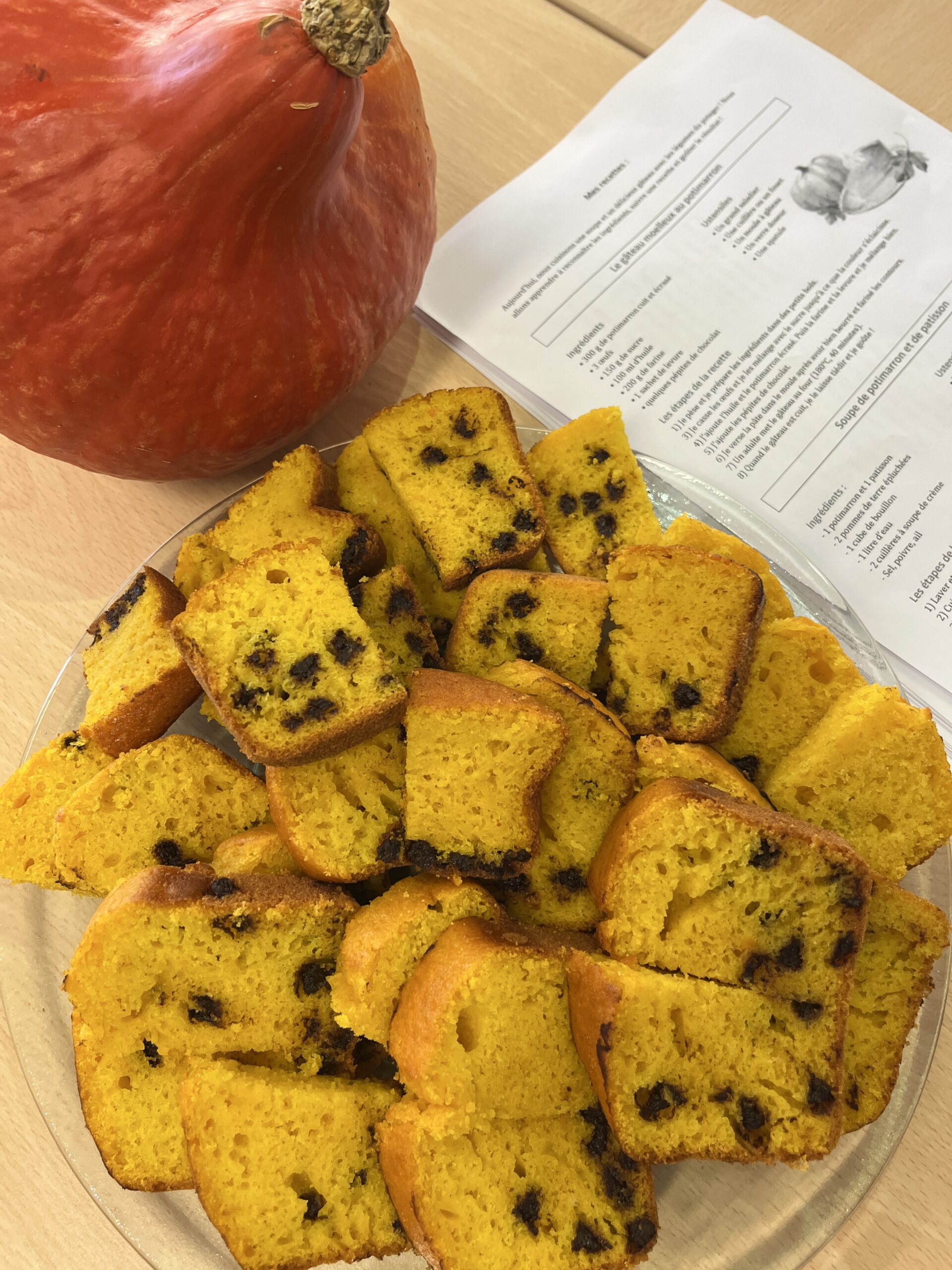 – deux gâteaux à base de potimarrons, d’épices et de pépites de chocolat.